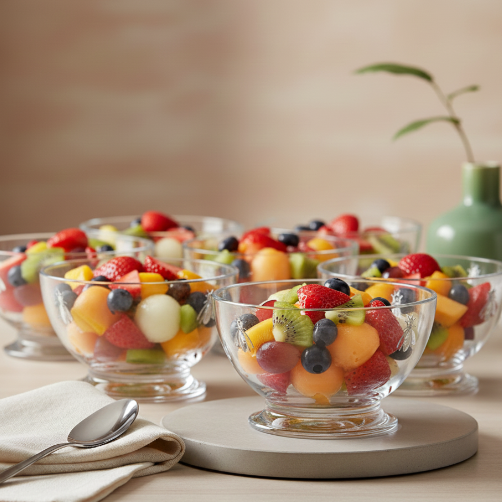 Mini bol en verre pressé sur pied, décor abeilles. Cette collection reprend les symboles de la maroquinerie de Napoléon.
