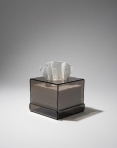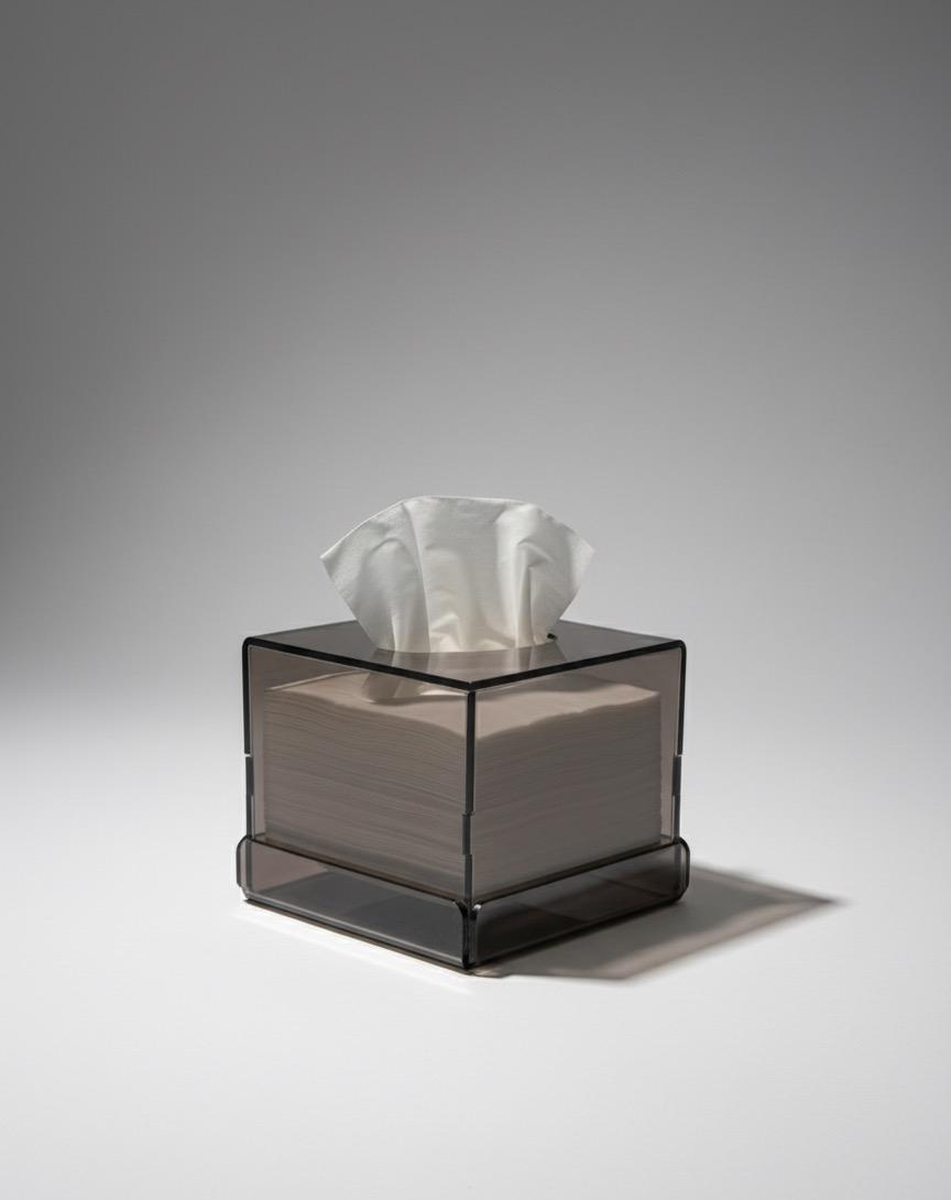 Boite a mouchoir carrée en plexiglass fumé gris , couleur trés spécifique