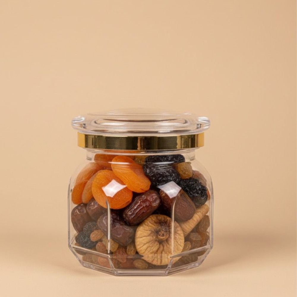 Sublimez votre rangement avec ce pot octogone d’une élégance cristalline. Son design facetté capte la lumière, tandis que son couvercle orné d’une bande dorée apporte une touche de luxe discret.