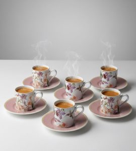 Plongez dans un jardin luxuriant à chaque dégustation avec cet exceptionnel ensemble de 6 tasses à café et leurs sous-tasses coordonnées. Parfait pour l’expresso, ce service apporte une touche de poésie et de raffinement à votre quotidien et à vos réceptions.