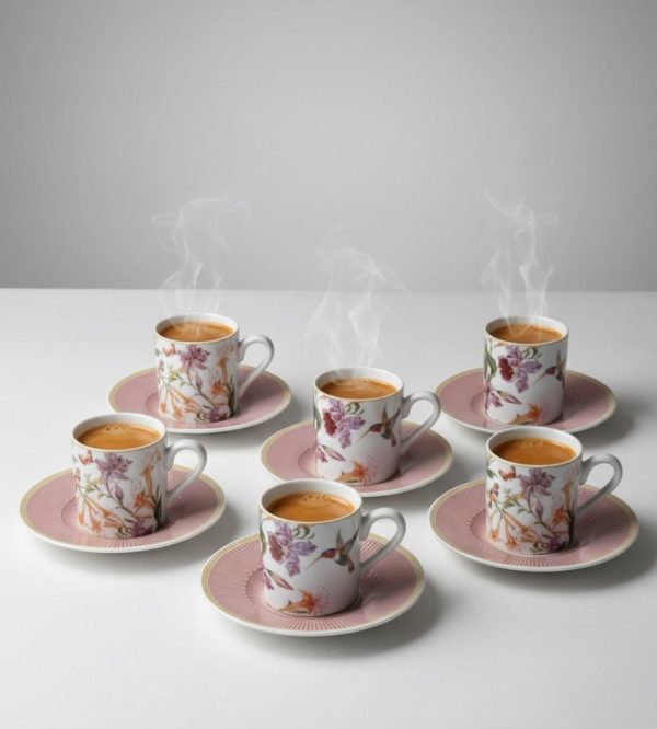 Plongez dans un jardin luxuriant à chaque dégustation avec cet exceptionnel ensemble de 6 tasses à café et leurs sous-tasses coordonnées. Parfait pour l’expresso, ce service apporte une touche de poésie et de raffinement à votre quotidien et à vos réceptions.