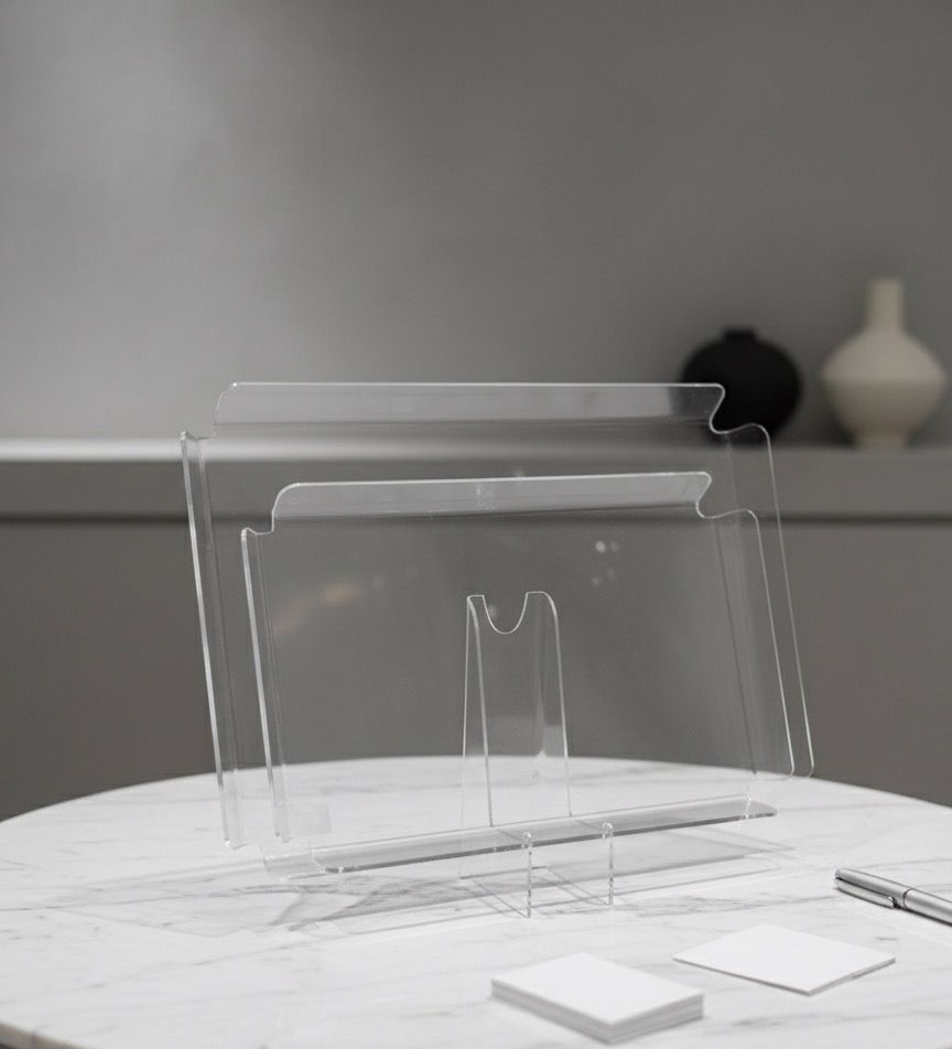 Duo de plateaux en plexiglas a été développé spécialement avec une touche de légèreté, ses cotes échancrées lui donnent une allure à la fois fraiche et élégante.