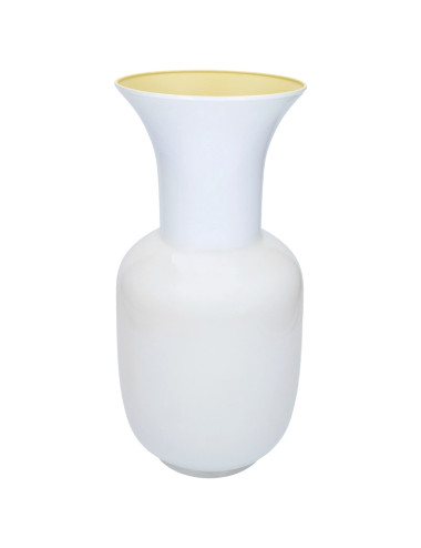 L’image présente une charmante variante du vase classique « Argo » de Brandani. Cette version bicolore offre un contraste élégant et raffiné, alliant le blanc pur de l’extérieur à la chaude teinte ocre de l’intérieur.